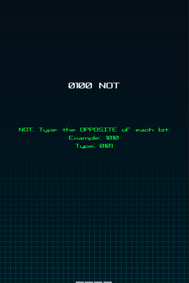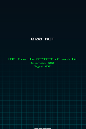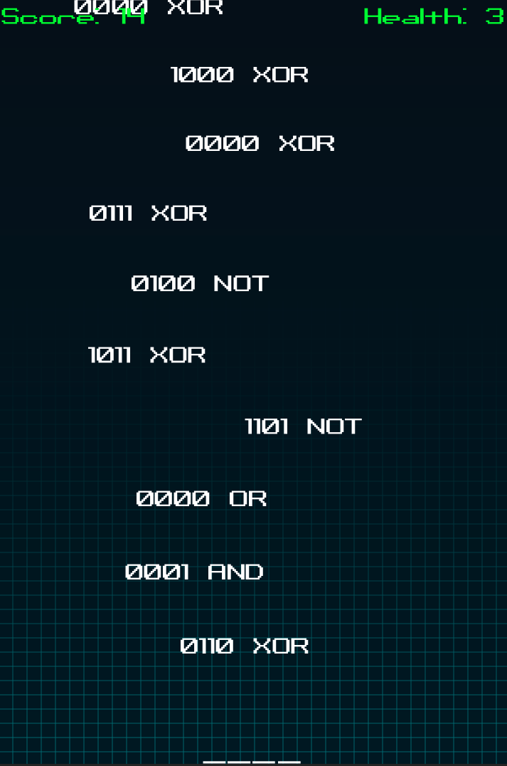 The world is being attacked by malicious binary combinations and only you can defeat them. Armed with your favorite binary operations you need to find the correct bit mask to nullify the incoming attackers. You might also get lucky and get some powerups to help you in your quest of defending earth.